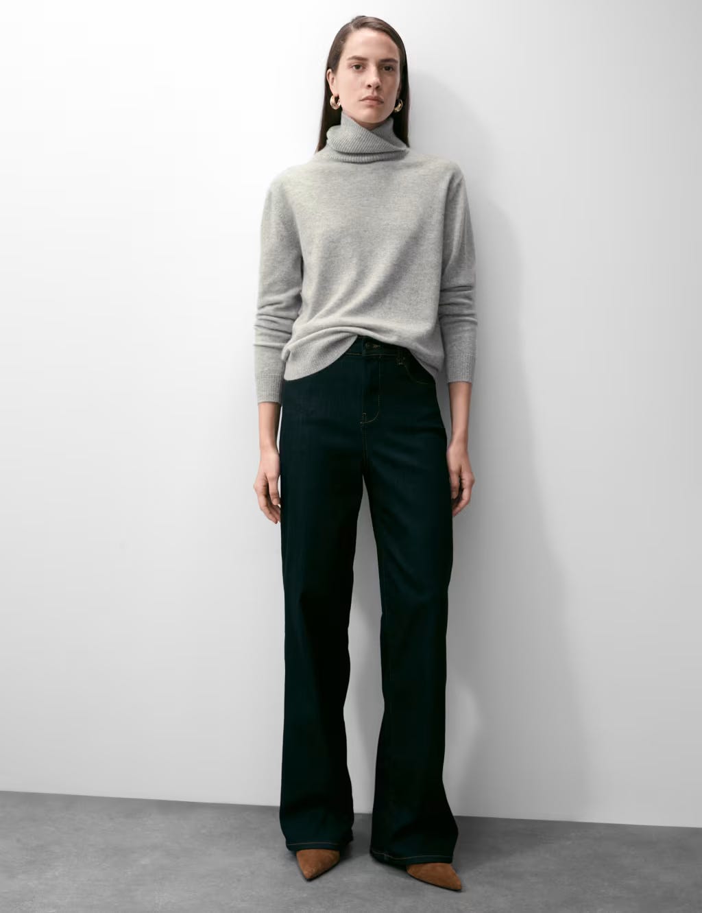 Style these wide leg trousers with a fitted roll neck. Add a shirt over the rollneck for expert layering . Love that you can wear knee high boots with this given the width of the trouser leg
